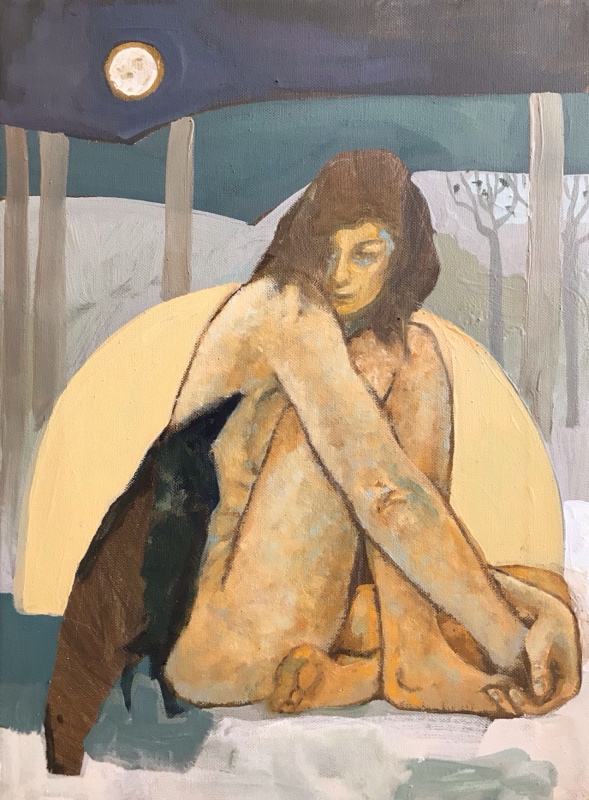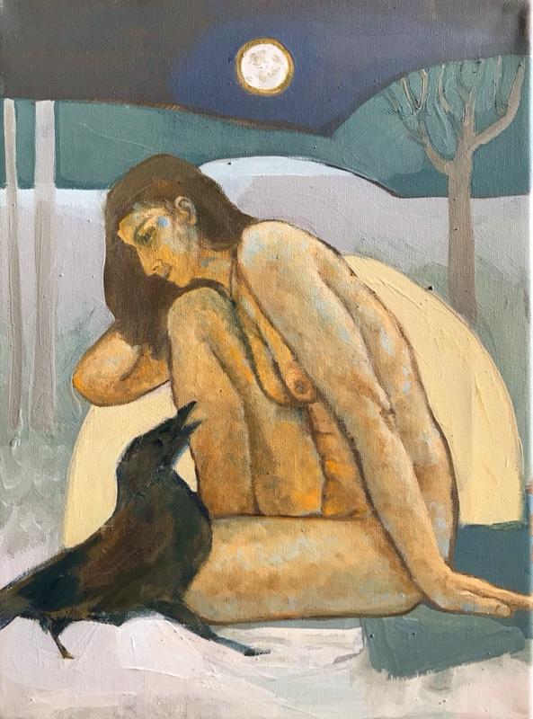 "Meine Malerei speist sich aus Jugendstil, Expressionismus und überraschenderweise auch aus der Textilindustrie. Ich habe viele Jahre am Webstuhl gearbeitet. Das konnte nicht spurlos an meiner Bildsprache vorbeigehen. Meine Bilder wirken oft wie aus farbigen Stoffen zusammengesetzt. Oder ich benutze, wie in diesem Fall, eine alte, bedruckte Tischdecke, um meine Malerei darauf aufzubauen."